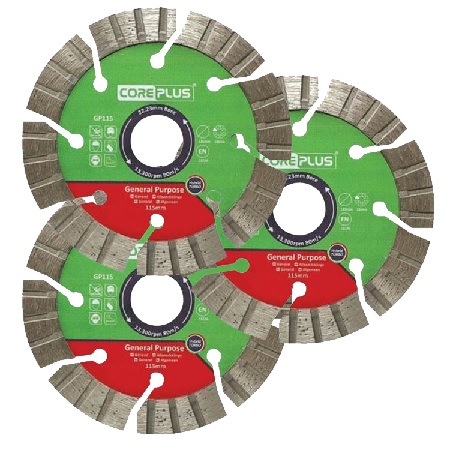 • CorePlus Hybrid Diamond Blades are ideal for use on slabs, asphalt, pipes, lintels, and slate.