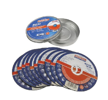 The Faithfull Multi-Cut Cutting Discs will cut a wide range of materials used in the construction and fabrication industries. At only 1mm thick they are able to provide a fast cutting action with less waste and dust. Multi-Cut discs solve the problem of cutting several different materials at once and are ideal for cutting modern-day composite materials used throughout the industry. Will cut sheet metal, stainless steel (inox), pipes and profiles, brick, stone, ceramic tiles and other building materials along with plastics/ PVC.