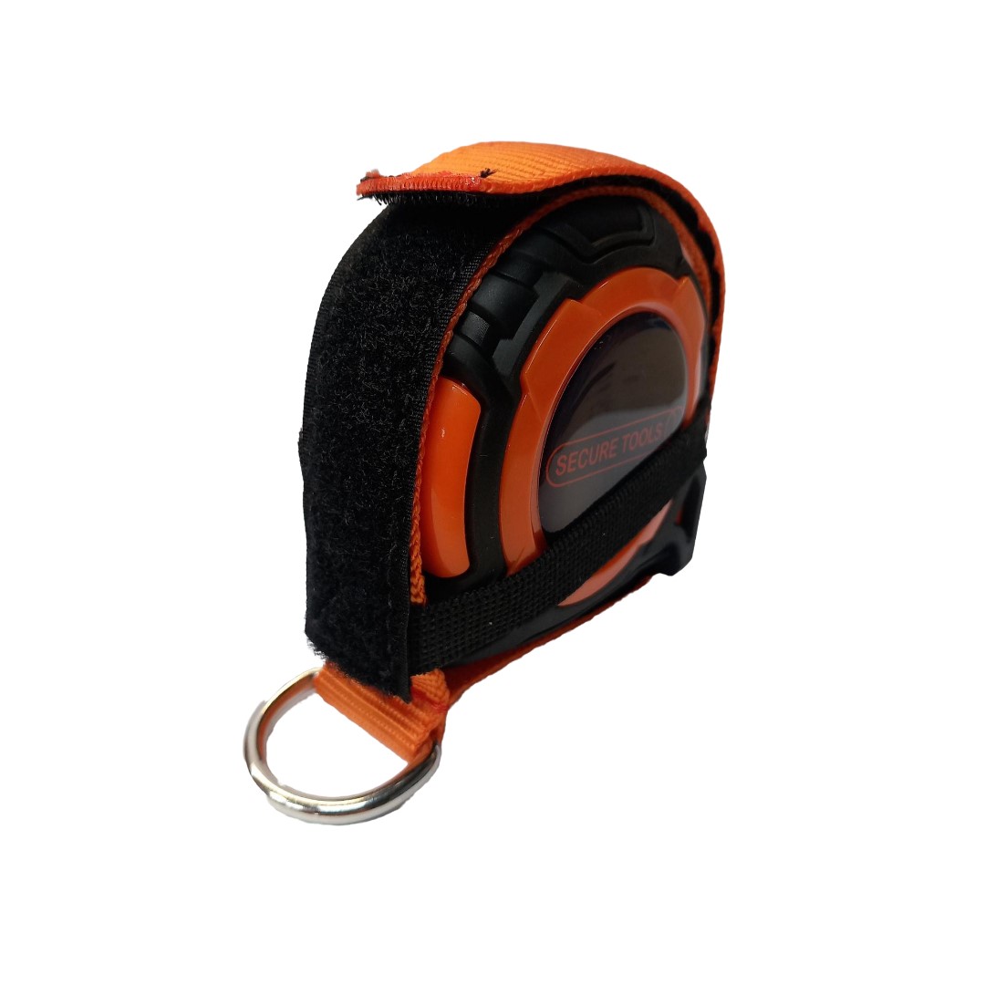 Specially designed with its ergonomic use in mind, the Secure Tools Tape Measure Tether allows the normal use of the measure with a high level of comfort. The sturdy clip allows the measure to be attached to belts in a conventional manner. A toughened ring on the rear of the holder allows the easy attachment to a suitable tool lanyard.