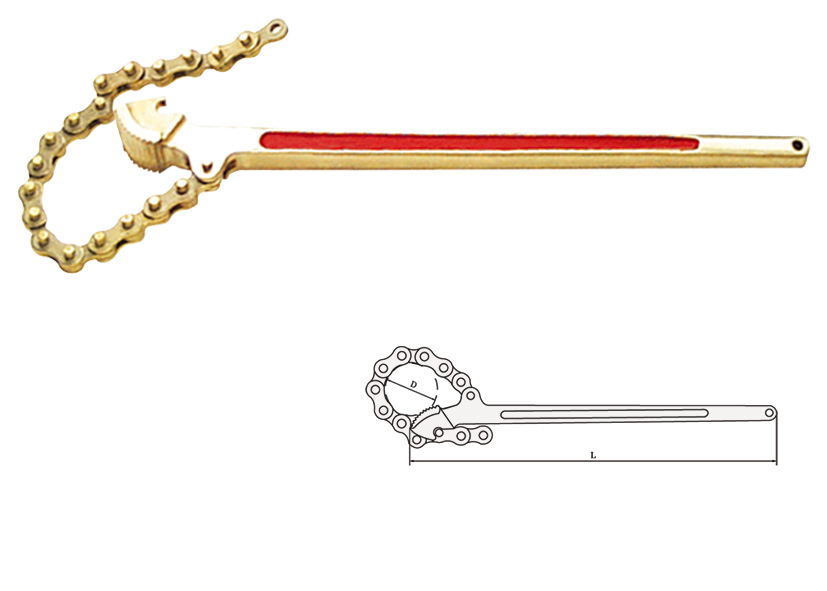 Non sparking chain pipe wrench light, max pipe diameter 100mm overall length 600mm