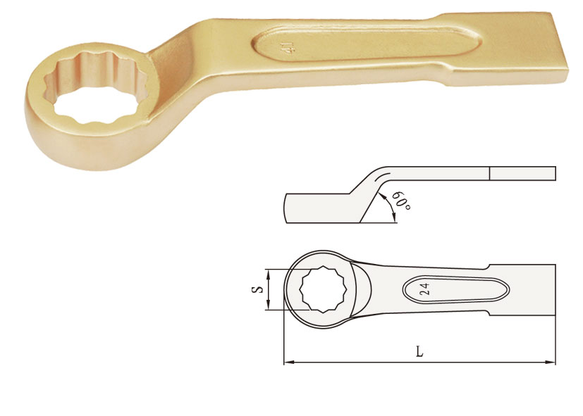 24mm Be-Cu X-Spark non sparking Metric offset slogging / flogging ring wrench die forged