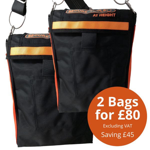 2x Tools at Height Bags with secure pocket on the inside two rows of secure solid D rings for tool lanyard attachment
