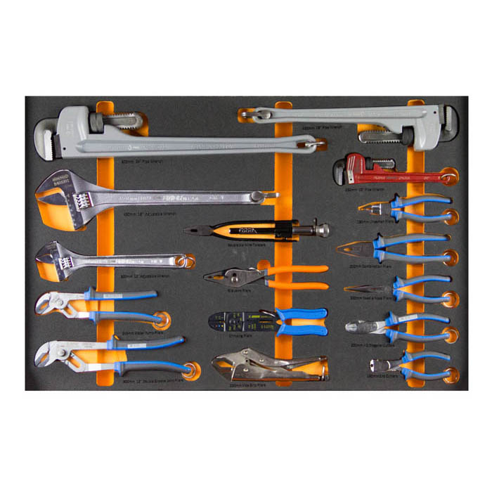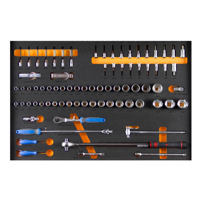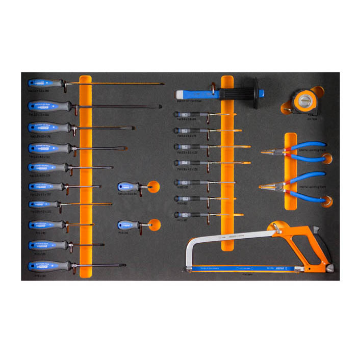 Derrick kit Model 40 219 Piece tool kit for working at height in static cabinet with easy audit foam tool control 1 x 7 Drawer locking tool cabinet with foam tool control 1 x 200mm Combination pliers 1 x 220mm Combination pliers 1 x 180mm Linemen`s pliers 1 x 200mm Heavy duty diagonal cutting nippers 1 x 200mm Long nose pliers with side cutter and pipe grip, straight 1 x 240mm Crimping pliers 1 x 9" (230mm) Cable shears 1 x Reversible 9" (225mm) wire twister 1 x Slip joint pliers 10" (250mm) 1 x 250mm Universal lock - grip pliers 1 x 240mm Water pump pliers groove joint 1 x 300mm Water pump pliers groove joint 1 x Flat screwdriver 1.0 X 5.5 X 100 1 x Flat screwdriver 1.2 X 6.5 X 125 1 x Flat screwdriver 1.2 X 8.0 X 150 1 x Flat screwdriver 1.6 X 10.0 X 175 1 x Flat Screwdriver 2.0 X 12 X 250 1 x Flat electrician`s screwdriver 0.8 x 4.0 x 150 1 x Flat electrician`s screwdriver 1.0 X 5.5 X 280 1 x Stubby flat screwdriver 1.2 X 6.5 X 35 1 x Philips screwdriver PH1 x 80mm 1 x Philips screwdriver PH2 x 100mm 1 x Philips screwdriver PH3 x 150mm 1 x Philips stubby screwdriver PH2 x 35 1 x Flat electronic screwdriver 0,3x1,8x60 1 x Flat electronic screwdriver 0,4x2,5x75 1 x Flat electronic screwdriver 0,5x3x100 1 x Flat electronic screwdriver 0,8x4x100 1 x Phillips (PH) electronic screwdriver PH 00x60 1 x Phillips (PH) electronic screwdriver PH 0x60 1 x Phillips (PH) electronic screwdriver PH 1x80 1 x Norbar TTi300 at Height Torque wrench 1/2" drive 60-300nm, 45-220lbft 2 x Ratchet 1/2" drive 1 x 18" (460MM) Swivel handle 1/2" drive 1 x 12" (300MM) Sliding T - handle 1/2" drive 2 x 125mm Extension bar 1/2" drive 2 x 250mm Extension bar 1/2" drive 1 x Universal joint 1/2" drive 1 x Adaptor 1/2" drive to 3/4" drive 2 x Pin push tool for sockets and accessories 1 x 3/8" socket 1/2" drive, 12 point 1 x 7/16" socket 1/2" drive, 12 point 1 x 1/2" socket 1/2" drive, 12 point 1 x 9/16" socket 1/2" drive, 12 point 1 x 19/32" socket 1/2" drive, 12 point 1 x 5/8" socket 1/2" drive, 12 point 1 x 11/16" socket 1/2" drive, 12 point 1 x 3/4" socket 1/2" drive, 12 point 1 x 25/32" socket 1/2" drive, 12 point 1 x 13/16" socket 1/2" drive, 12 point 1 x 7/8" socket 1/2" drive, 12 point 1 x 15/16" socket 1/2" drive, 12 point 1 x 1" socket 1/2" drive, 12 point 1 x 1 -1/16" socket 1/2" drive, 12 point 1 x 1- 1/8" socket 1/2" drive, 12 point 1 x 1- 3/16" socket 1/2" drive, 12 point 1 x 1 -1/4" socket 1/2" drive, 12 point 1 x 10mm Socket 1/2" drive, 12 point 1 x 11mm Socket 1/2" drive, 12 point 1 x 12mm Socket 1/2" drive, 12 point 1 x 13mm Socket 1/2" drive, 12 point 1 x 14mm Socket 1/2" drive, 12 point 1 x 15mm Socket 1/2" drive, 12 point 1 x 16mm Socket 1/2" drive, 12 point 1 x 17mm Socket 1/2" drive, 12 point 1 x 18mm Socket 1/2" drive, 12 point 1 x 19mm Socket 1/2" drive, 12 point 1 x 20mm Socket 1/2" drive, 12 point 1 x 21mm Socket 1/2" drive, 12 point 1 x 22mm Socket 1/2" drive, 12 point 1 x 23mm Socket 1/2" drive, 12 point 1 x 24mm Socket 1/2" drive, 12 point 1 x 27mm Socket 1/2" drive, 12 point 1 x 30mm Socket 1/2" drive, 12 point 1 x 32mm Socket 1/2" drive, 12 point 1 x 36mm Socket 1/2" drive, 12 point 1 x 5mm Male Hex socket 1/2" drive 1 x 6mm Male Hex socket 1/2" drive 1 x 7mmMale Hex socket 1/2" drive 1 x 8mm Male Hex socket 1/2" drive 1 x 10mm Male Hex socket 1/2" drive 1 x 12mm Male Hex socket 1/2" drive 1 x 14mmMale Hex socket 1/2" drive 1 x 17mm Male Hex socket 1/2" drive 1 x 19mm Male Hex socket 1/2" drive 1 x 3/16'' Male Hex socket 1/2" drive 1 x 7/32'' Male Hex socket 1/2" drive 1 x 1/4'' Male Hex socket 1/2" drive 1 x 5/16'' Male Hex socket 1/2" drive 1 x 3/8'' Male Hex socket 1/2" drive 1 x 1/2'' Male Hex socket 1/2" drive 1 x 9/16'' Male Hex socket 1/2" drive 1 x 5/8'' Male Hex socket 1/2" drive 1 x 3/4'' Male Hex socket 1/2" drive 1 x 1-3/8" 6 Point socket3/4" drive 1 x 1-7/16" 6 Point socket3/4" drive 1 x 1-1/2" 6 Point socket3/4" drive 1 x 1-5/8" 6 Point socket3/4" drive 1 x 1-11/16" 6 Point socket3/4" drive 1 x 1-13/16" 6 Point socket3/4" drive 1 x 1-7/8" 6 Point socket3/4" drive 1 x 2" 6 Point socket3/4" drive 1 x 1/4" Combination wrench / spanner 1 x 5/16" Combination wrench / spanner 1 x 3/8" Combination wrench / spanner 1 x 7/16" Combination wrench / spanner 1 x 1/2" Combination wrench / spanner 1 x 9/16" Combination wrench / spanner 1 x 5/8" Combination wrench / spanner 1 x 11/16" Combination wrench / spanner 1 x 3/4" Combination wrench / spanner 1 x 13/16" Combination wrench / spanner 1 x 7/8" Combination wrench / spanner 1 x 15/16" Combination wrench / spanner 1 x 1" Combination wrench / spanner 1 x 1.1/16" Combination wrench / spanner 1 x 1.1/8" Combination wrench / spanner 1 x 1.1/4" Combination wrench / spanner 1 x 1. 5/16" Combination wrench / spanner 2 x 10 mm Combination wrench / spanner 2 x 13 mm Combination wrench / spanner 2 x 17 mm Combination wrench / spanner 2 x 19 mm Combination wrench / spanner 2 x 22 mm Combination wrench / spanner 2 x 24 mm Combination wrench / spanner 2 x 27 mm Combination wrench / spanner 2 x 30 mm Combination wrench / spanner 2 x 32 mm Combination wrench / spanner 1 x 6mm X 7mm Flat ring wrench / spanner 1 x 8mm X 9mm Flat ring wrench / spanner 1 x 10mm X 11mm Flat ring wrench / spanner 1 x 12mm X 13mm Flat ring wrench / spanner 1 x 14mm X 15mm Flat ring wrench / spanner 1 x 16mm X 17mm Flat ring wrench / spanner 1 x 18mm X 19mm Flat ring wrench / spanner 1 x 20mm X 22mm Flat ring wrench / spanner 1 x 8mm X 10mm Open ring wrench / spanner / flare wrench 1 x 10mm X 11mm Open ring wrench / spanner / flare wrench 1 x 11mm X 13mm Open ring wrench / spanner / flare wrench 1 x 12mm X 14mm Open ring wrench / spanner / flare wrench 1 x 16mm X 18mm Open ring wrench / spanner / flare wrench 1 x 17mm X 19mm Open ring wrench / spanner / flare wrench 1 x 19mm X 22mmOpen ring wrench / spanner / flare wrench 1 x 22mm X 24mm Open ring wrench / spanner / flare wrench 2 x 10" (250mm) Adjustable wrench 32mm open jaw capacity 1 x 18" (450mm) Adjustable wrench 60mm open j
