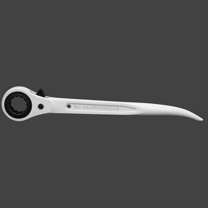 This white Priory 604 Short Ratchet Podger has a hole for attaching a lanyard and has a flush box for use when space is restricted.
