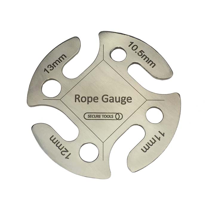 Stainless steel gauge to measure all your ropes, can be measured through the hole to check the entire length or slid over the rope at any point
