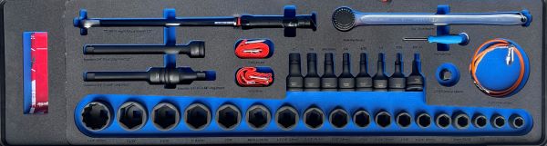 38 Piece 3/4" Drive Imperial Impact Socket Set P04, includes standard size imperial impact sockets, male hex, 300Nm torque wrench and accessories