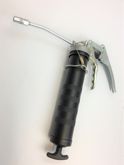 Heavy duty, high quality, pistol lever operated grease gun with rigid angled spout