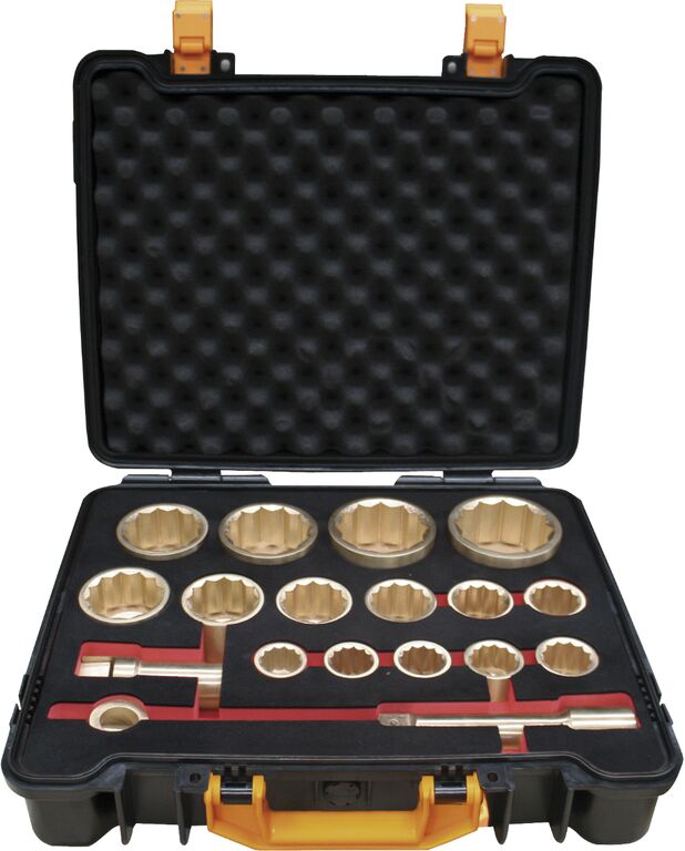 SET; SOCKET WRENCHES; 1"; 18 PIECES; NON-SPARKING; CU-BE; 1.1/16"-3.1/8"